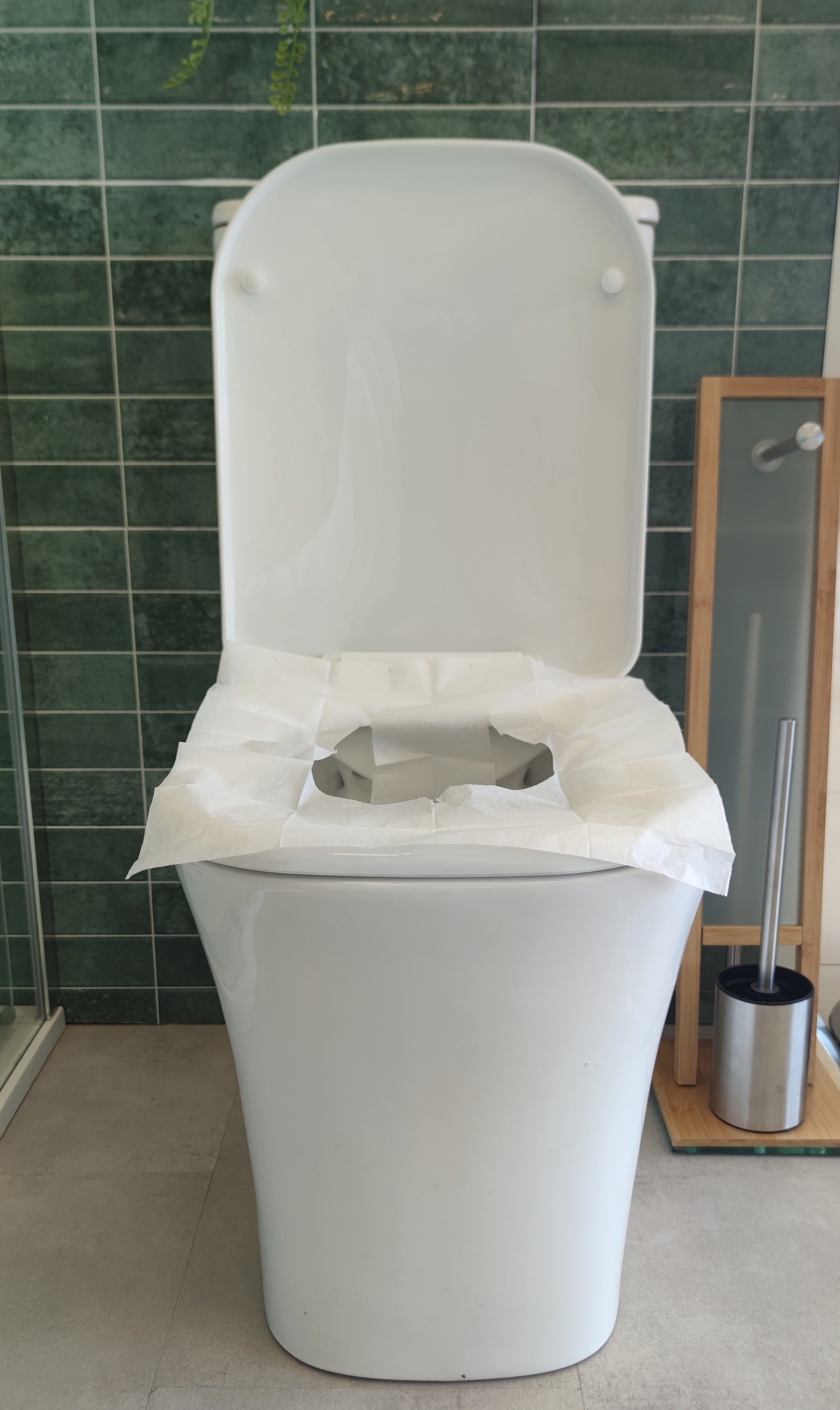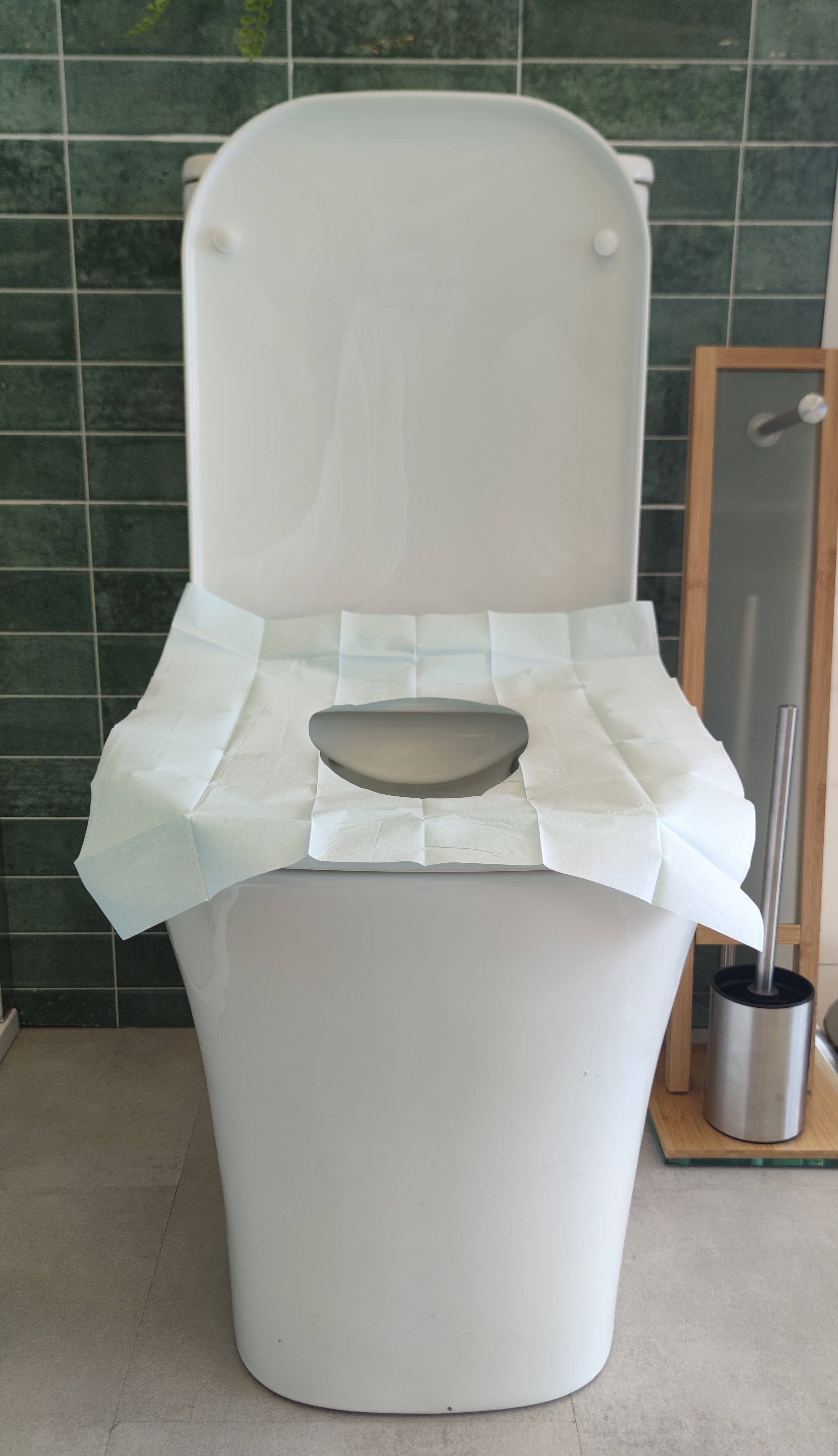 Cubierta desechable (papel) para asiento de inodoro.